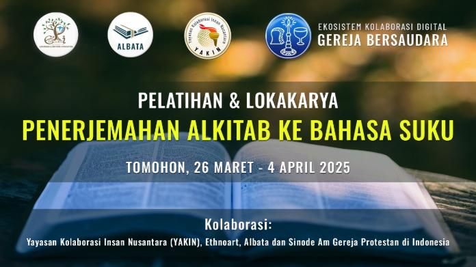 Tomohon, 26 Maret 2025 – Sebagai bagian dari kerjasama di dalam bingkai Program Ekosistem Kolaborasi Gereja Bersaudara, Yayasan Kolaborasi Insan Nusantara (YAKIN), bekerjasama dengan Sinode Am Gereja Protestan di Indonesia, Ethnoart (Filipina) dan Yayasan Albata dalam mengadakan Pelatihan dan Lokakarya Penerjemahan Alkitab ke Bahasa Suku.